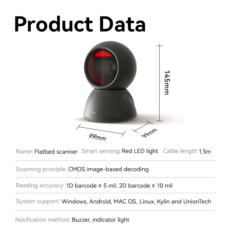 | Decoding Capability | 24 types of 1D codes, 4 types of 2D code4 |